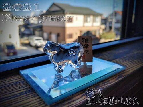 もう松の内も過ぎて、あけおめって日付ではないので、『本年も宜しくお願いします』だけで、ひとつどーかw(年始っぽい写真がないから、ほんと今さっき、リビングの東の窓に干支のウシの飾りもんを置いてスマホ激写wエフェクトかけてそれらしく載せた図↑)…