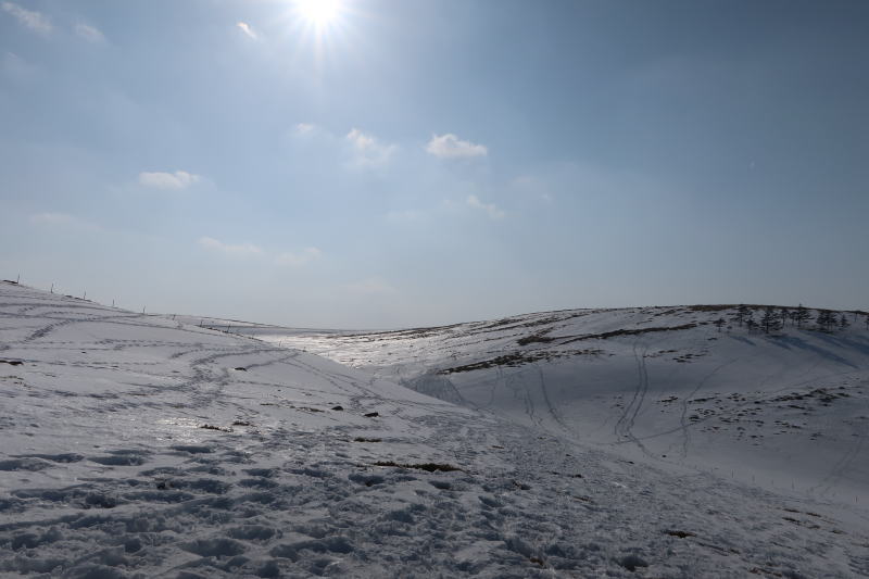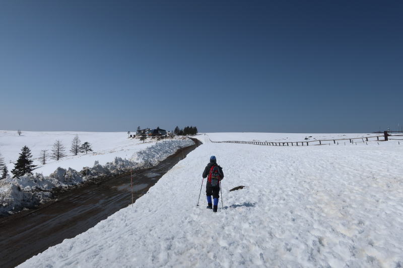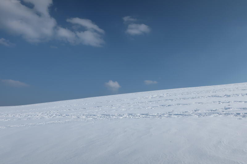 今年は雪が少ない上に、ここ数日の気温で雪が溶けていて雪質はいまいちでしたが、広がる大雪原と青空の白と青の対比を思う存分楽しめました。