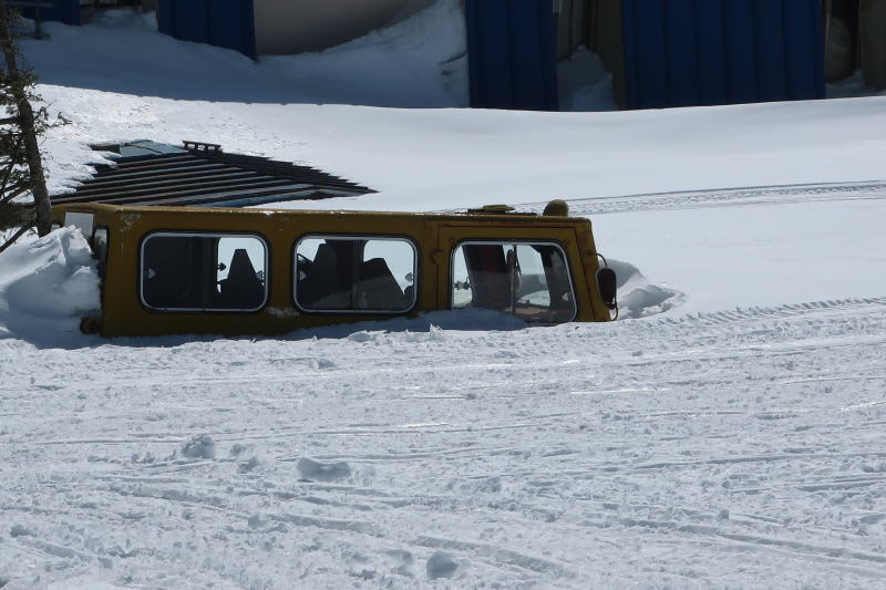 山本小屋の庭先、使ってない雪上車が埋もれてる。軽く1.5mは積もっているか。