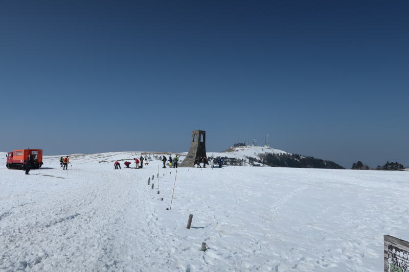 美しの塔が見えてきた。ん?なんか人がたくさんいる。雪上車もあるし。