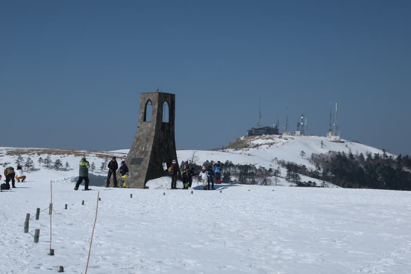 地平線までの雪原の向こうに王ヶ頭ホテルと電波塔。 そう、この景色が見たかった。