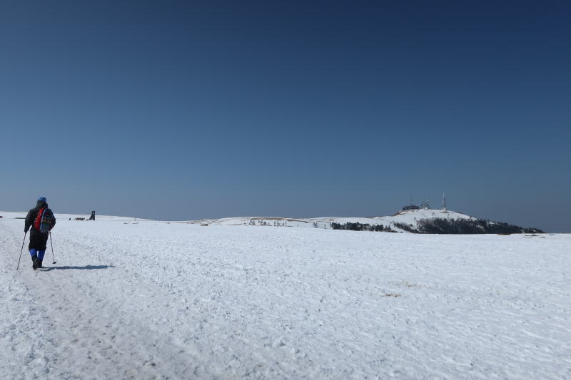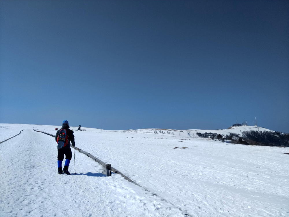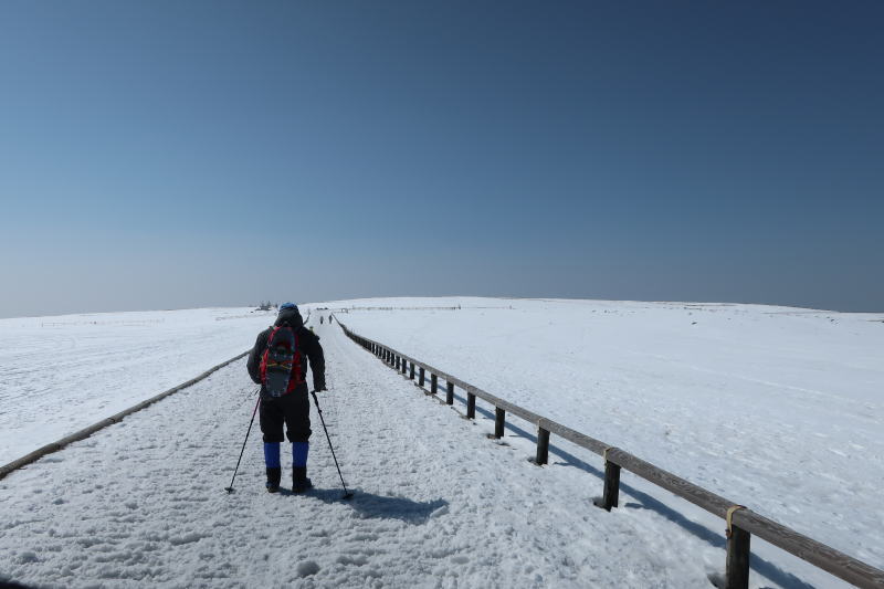 地平線で青空と雪原がほぼ直線に交わるその景色を見たくて、美ヶ原に行ってきました。