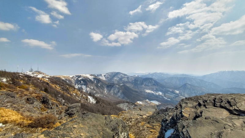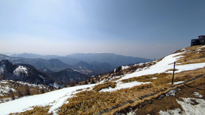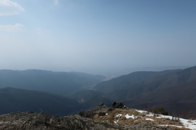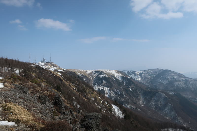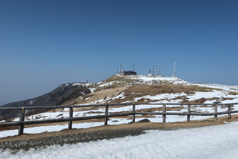 景色サイコー過ぎて、同じような写真を量産してしまう。晴れて青空でしたが、春霞なのか花粉なのか、見晴らしは効かない天気で、楽しみにしてた山々の展望は皆無でした。