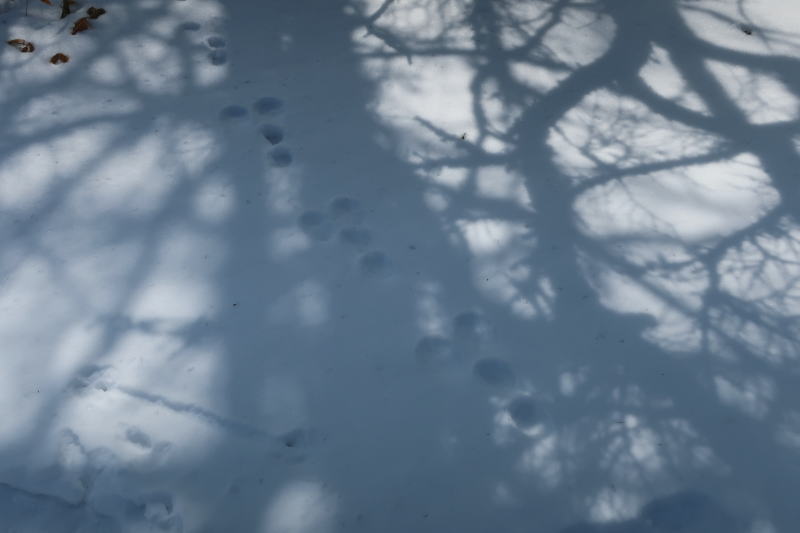 ウサギの足跡見っけ~!雪は動物の足跡が見えるのも楽しい。
