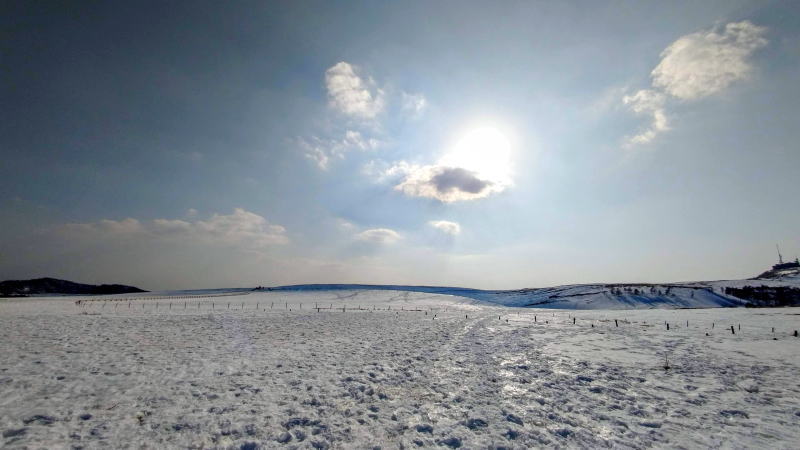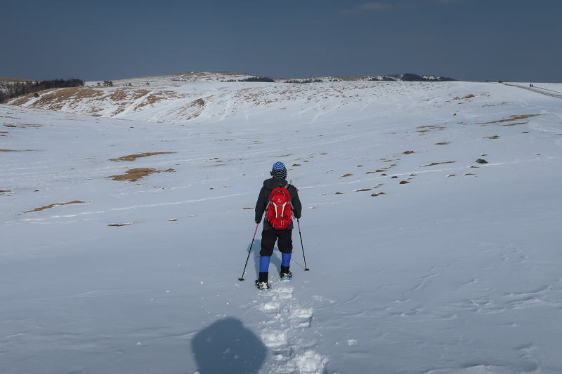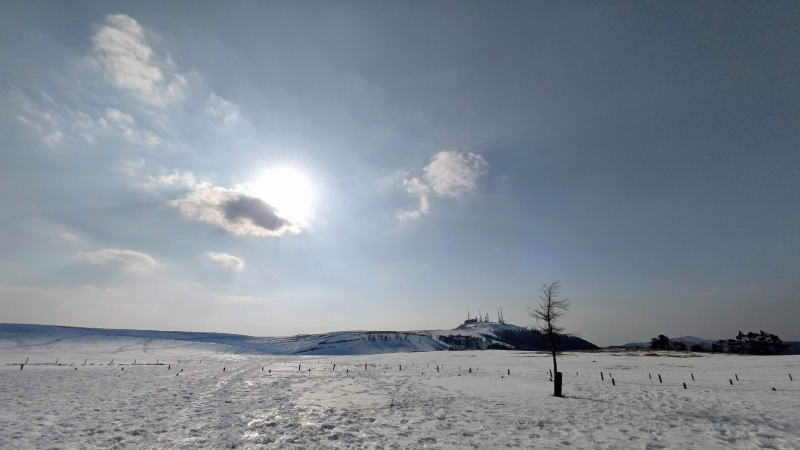 あちこちスノーシューで歩いてきて、まだ行ってない一級ポイントが冬の美ヶ原。2000m越えの平らな高原の牧場地は、冬季は広大な雪原と化し、まるで北海道のように地平線まで白く染まります。