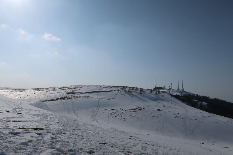 時間が遅いから誰もいなくて静か。美ヶ原を一人占めです。こんな時間まで雪原にいるのは新鮮。このまま夕日も見てみたい気もするけど、帰りの和田峠の下り道があるから、日があるうちに降りなくちゃ。